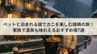 この記事では、城崎・竹野・香住エリアで、ペットと泊まれカニ料理も楽しめる宿を7つ厳選しました。ペットと一緒に過ごせる設備や、カニ料理の内容、アクセスの良さまで、それぞれの宿の魅力を紹介しています。愛犬と一緒にカニを楽しみたい方や、家族みんな...